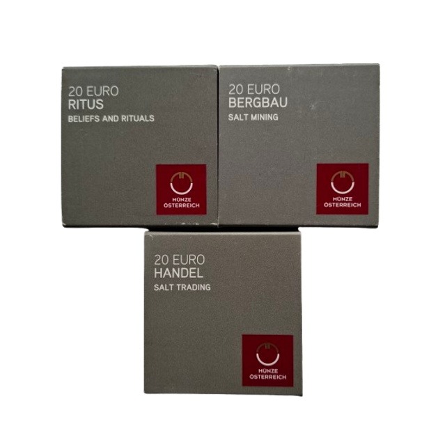 Para complementar a série "O Ouro Branco de Hallstatt", com suas três moedas fascinantes – Mineração de Sal, Comércio de Sal e Rituais e Crenças – e um estojo de colecionador exclusivo e elegante para guardá-las.