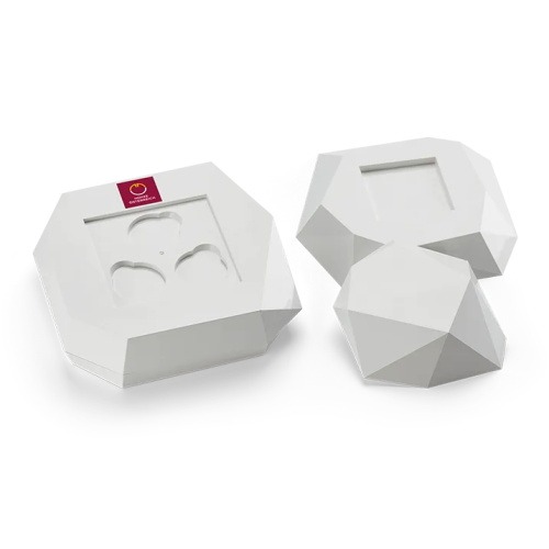 Facilmente divisível em quatro partes unidas por ímãs, o cristal não só oferece espaço para as três moedas da série, mas também para seus certificados e o livro que acompanha a série (não incluído no cristal na compra).