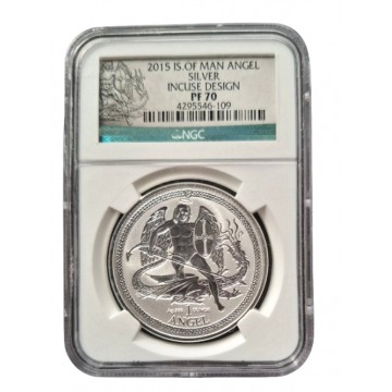 Ilha de Man – 1 Onça (1 oz) de prata fina, Angel - NGC MS70