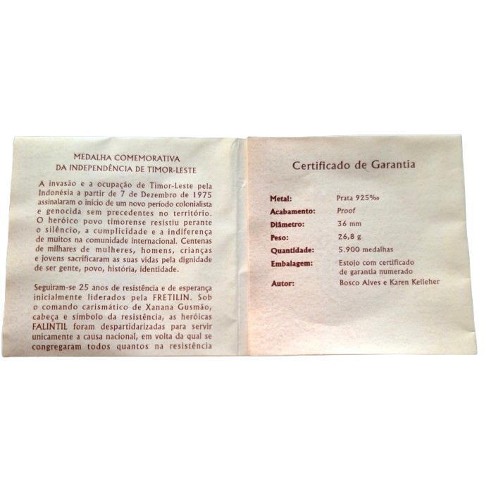 Esta medalha é dedicada a todos os herois e heroínas que tombaram no solo sagrado de Timor-Leste pela causa da liberdade e da eterna dignidade humana.